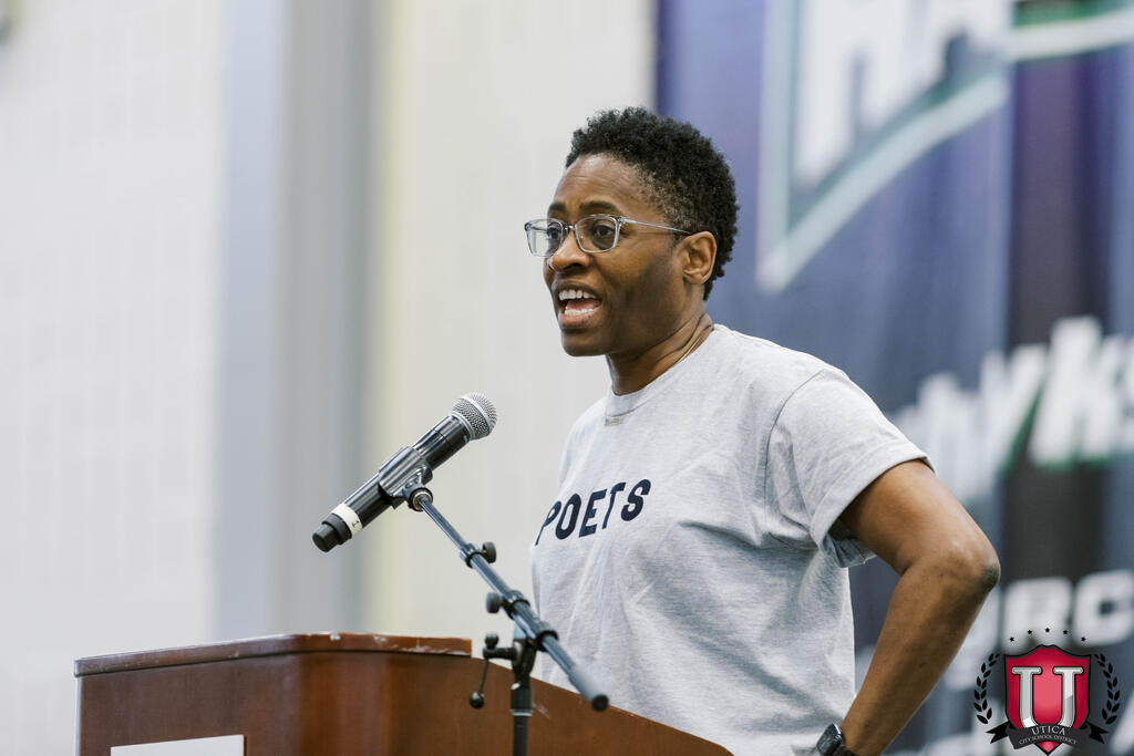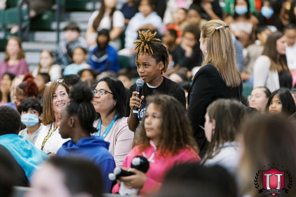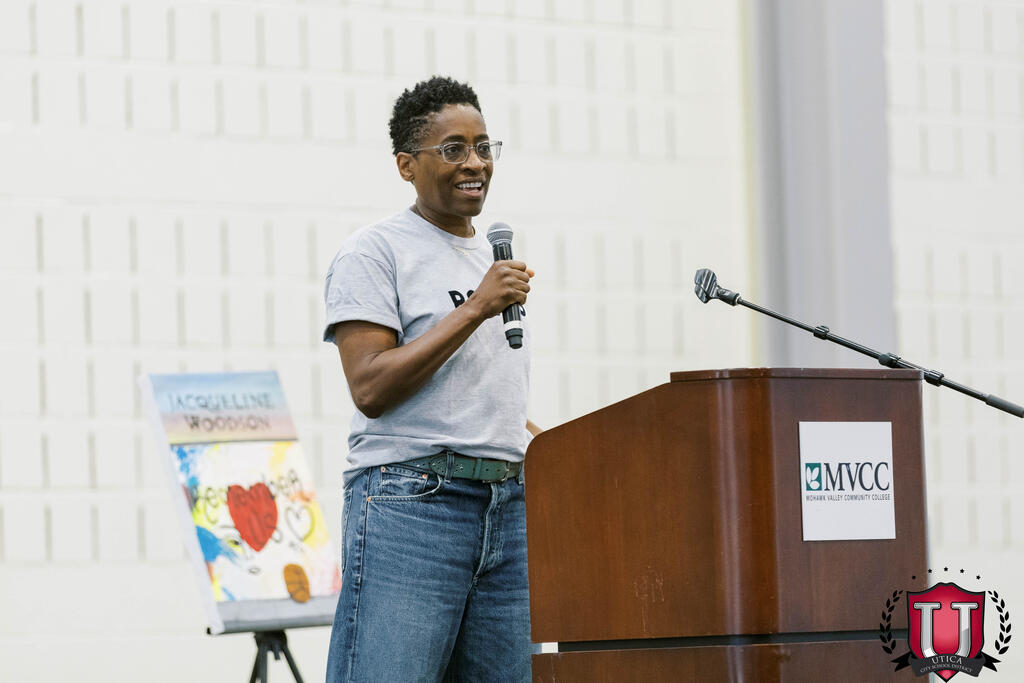 Los estudiantes tuvieron la oportunidad de escuchar a la escritora Jacqueline Woodson hablar de su carrera y hacerle preguntas. Jacqueline Woodson es una escritora innovadora de literatura infantil y juvenil, y ha publicado 43 libros. Sus obras animan a los estudiantes a ser mejores escritores y apoyan la educación del carácter. Alumnos de la Escuela Primaria General Herkimer crearon réplicas de portadas de libros para el evento, que se exhibieron con orgullo en el escenario mientras Jacqueline hablaba.